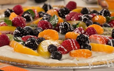 Słodka, owocowa rozkosz na każdą okazję! Idealna na deser dla całej rodziny. Składniki: 1 gotowe ciasto na pizzę 200 g serka…