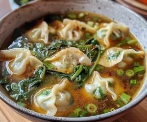 🥣 Przepis na pyszne Zupę z pierogami, zielonymi warzywami liściastymi i szczypiorkiem! 🥬🧄 Szukasz czegoś szybkiego, zdrowego i pysznego…