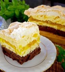 Ciasto Paź Królowej – ciasto czekoladowe z kremem ananasowym i bezą Składniki: Ciasto czekoladowe: 150 g masła 150 g cukru PEŁNY PRZEPIS