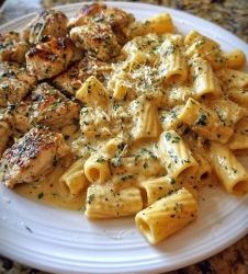 🍝🐔🧄🧀 **Rigatoni z kurczakiem, czosnkiem i parmezanem w kremowym sosie mozzarella Alfredo** **Składniki:** 🍝 450 g makaronu rigatoni 🫒 2…