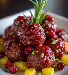 **Klopsiki z żurawiną i ananasem 🍍🍒🥩** **Składniki** • 450 g mrożonych lub domowych klopsików • 1 puszka (400 g) sosu…