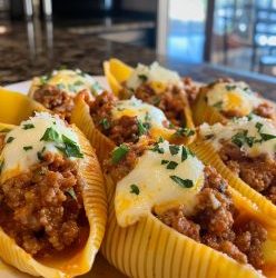 **🧄🧀 Kremowy czosnkowy raj: Pieczone muszle faszerowane kiełbasą i serem 🍽️🔥**