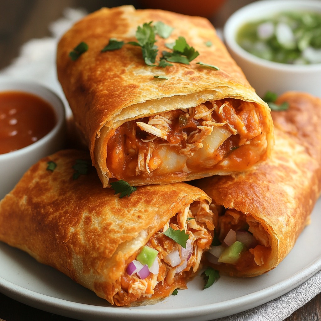 Złociste, chrupiące i pełne smaku – te chimichangi to idealny sposób na świętowanie! Użyj kurczaka z rożna lub dowolnego mięsa, które masz pod ręką. Usmaż je, aby uzyskać chrupiącą chrupkość, lub upiecz, aby uzyskać lżejszą wersję!