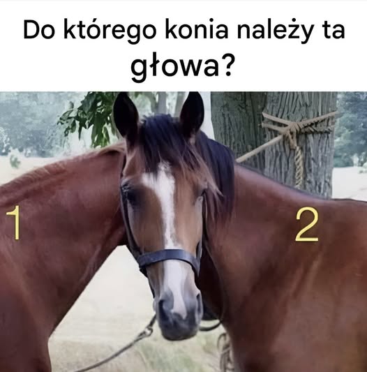 Nasz mózg uwielbia działać szybko. Analizuje, podejmuje decyzje, klasyfikuje… czasami trochę za szybko. W tej iluzji wydaje się oczywiste, że koń po lewej stronie jest na pierwszym planie. Jego spojrzenie, postawa, wszystko zdaje się na to wskazywać. Ale zwolnij trochę. Obserwuj całość, nie tylko głowy. Możesz być zaskoczony.