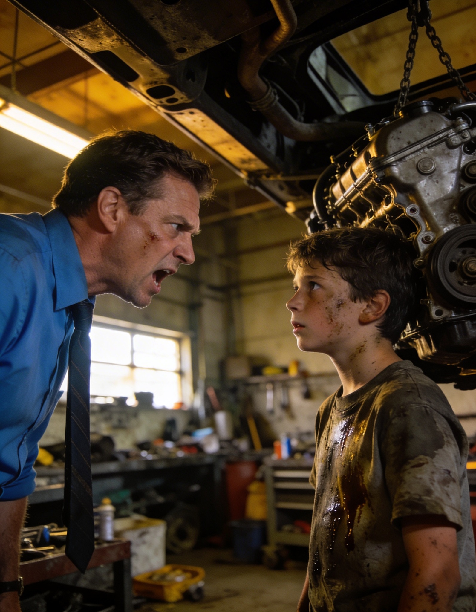 W warsztacie zapadła dziwna cisza. Na stołach leżało kilka narzędzi, w powietrzu unosił się zapach spalonego oleju, a neon migotał w sposób, który przypominał Dinu późne wieczory spędzone na studiowaniu broszur znalezionych w śmietniku.