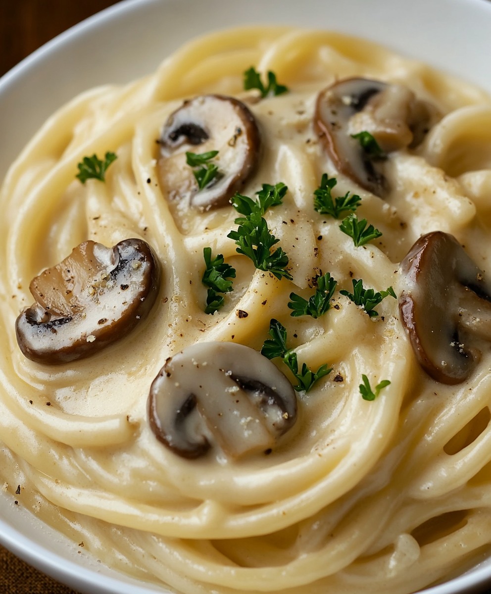 **🧄 Kremowy makaron z czosnkiem i grzybami – wymarzony obiad w tygodniu 🍄🍝**