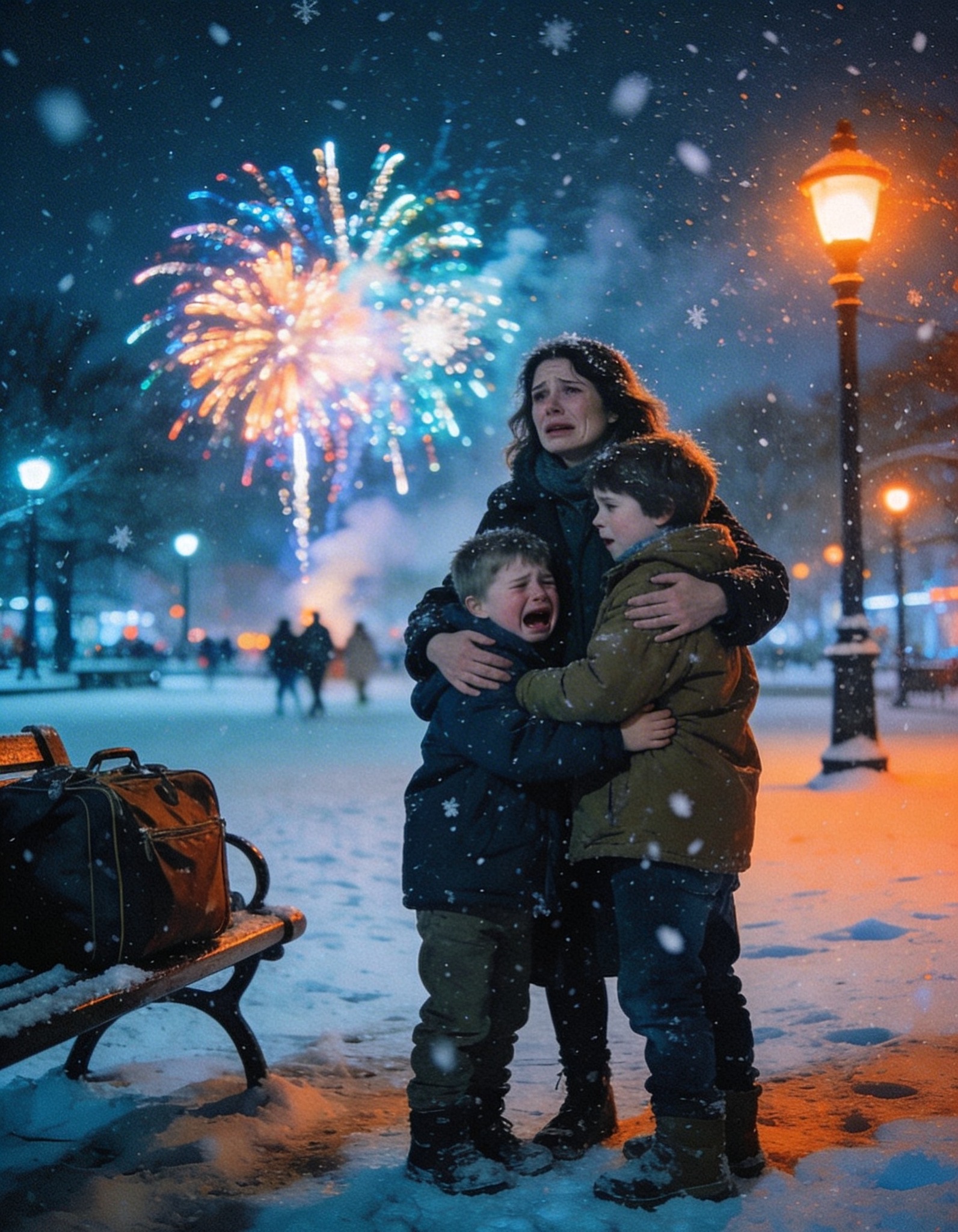 Ioana przytuliła się do brata, z policzkami czerwonymi od zimna. Matei często mrugał, zmęczony, szeroko otwierając oczy.