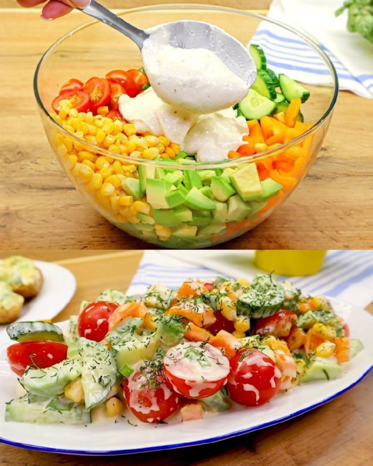 Jeśli szukasz lekkiej, zdrowej i pełnej smaku sałatki, która idealnie pasuje do wielu dań, ta propozycja z kukurydzy, papryki, awokado i pomidorów spełni Twoje oczekiwania. Dzięki połączeniu chrupiącej papryki, kremowego awokado i słodkiej kukurydzy, sałatka ta jest nie tylko pyszna, ale również pełna witamin i minerałów. Doskonała na lunch, kolację, grill lub przyjęcie, ta sałatka z pewnością zadowoli każdego gościa.
