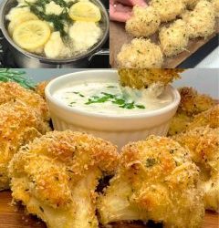 Składniki: – Na kalafior: 1 kg kalafiora 1 cytryna Koperek 150 g bułki tartej panko 1 ząbek czosnku 100 g…