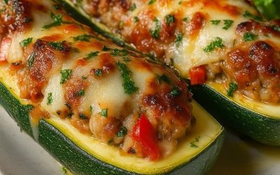 Faszerowane cukinie: Składniki: 4 średnie cukinie 1 szklanka ugotowanego ryżu 1/2 szklanki drobno posiekanej cebuli 1 ząbek czosnku (drobno posiekany)…