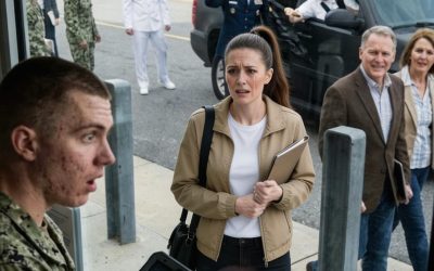 MÓJ BRAT DOSTAŁ AWANS NA KOMANDORA — A MNIE ZATRZYMANO PRZY BRAMIE MARYNARKI WOJENNEJ JAK PRZYPADKOWEGO OBCY. PODOFICER NIEUSTANNIE PUKAŁ W TABLET, POTEM POWIEDZIAŁ: „PRZEPRASZAM, PANIE… NIE MA PANI NA LIŚCIE KOMANDORA MARCUSA CARTWRIGHTA”, PODCZAS GDY RODZICE PRZESZLI TUŻ MIJĄC MNIE, UŚMIECHNIĘCI, JAKBY ZNÓW MNIE WYMAZYWALI. POTEM WSZEDŁ MARCUS, IDEALNIE WYSTĘPUJĄCY W SWOIM BIAŁYM MUNDURZE, I MAMROCZĄC: „LEAH ZAPOMNIAŁA POTWIERDZIĆ PRZYBYCIE… NIEKTÓRZY LUDZIE NIGDY NIE NAUCZĄ SIĘ ŁAŃCUCHA DOWODZENIA”. Właśnie wszedłem w cień — aż podjechał czarny SUV rządowy, z którego wysiadł admirał o stalowowłosych włosach i powiedział jedno zdanie, które sprawiło, że wszystkie głowy się odwróciły: „Uspokój się… Nie ma jej na twojej liście, bo ma wyższe uprawnienia niż twoje”. Wtedy spojrzał mi prosto w oczy, podniósł rękę… i nazwał mnie tytułem, którego moja rodzina nigdy nie użyła na głos…