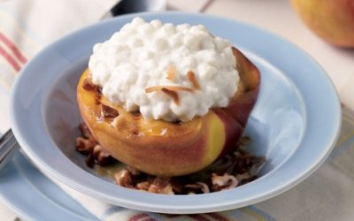 Składniki (dla 4 osób): 4 dojrzałe brzoskwinie 200 g twarożku (lub cottage cheese) 2 łyżki miodu Garść świeżej mięty Opcjonalnie:…