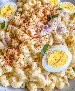 **😋 Kremowa sałatka makaronowa z jajkami faszerowanymi – idealne połączenie komfortu! 🥚🍝**