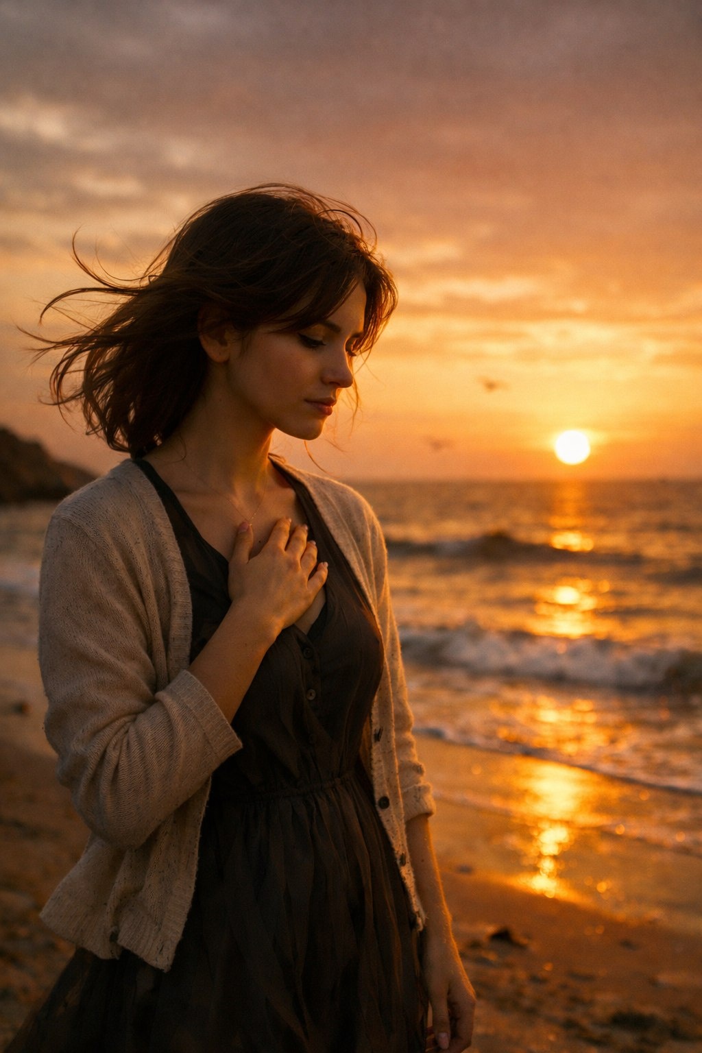 Julia siedziała na łóżku, trzymając dłoń na piersi.