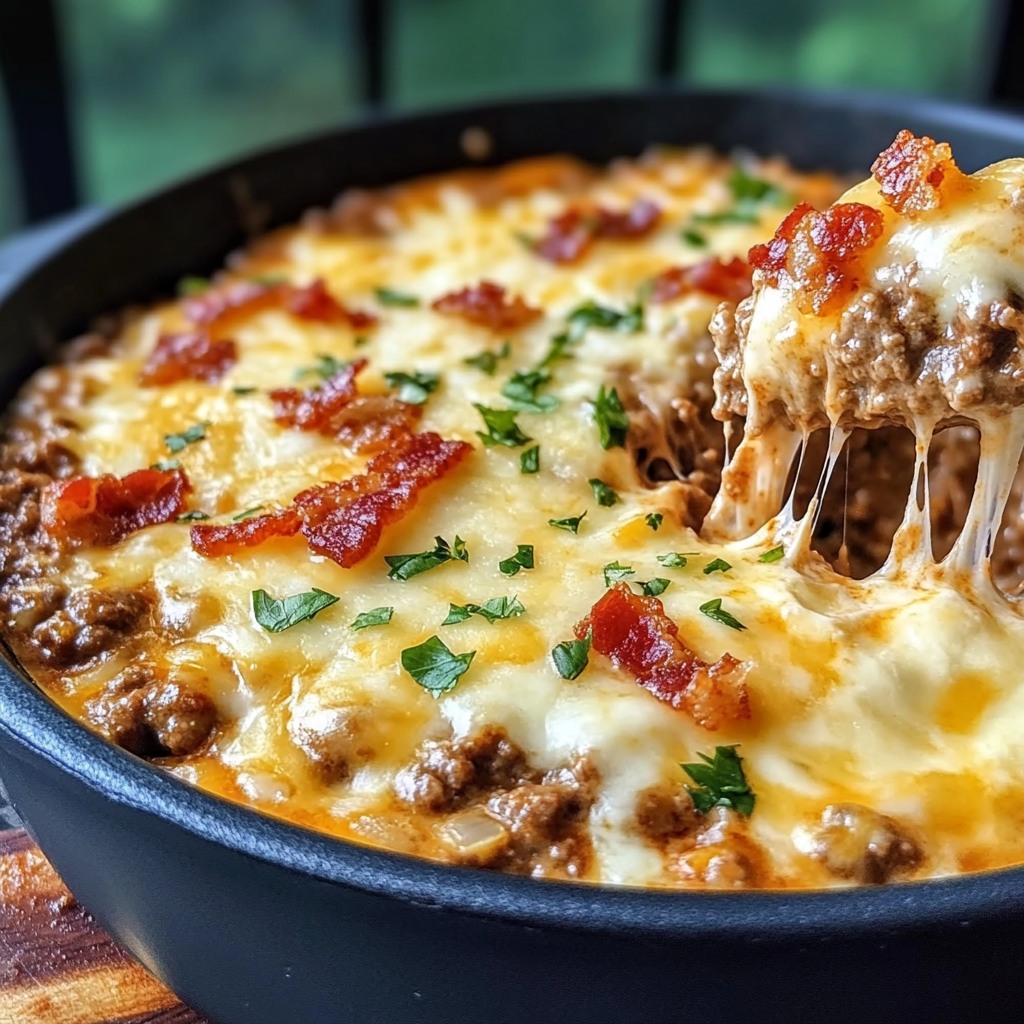 Rozkręć imprezę tym ultra kremowym, mięsnym, serowym dipem queso, który smakuje jak cheeseburger z bekonem!