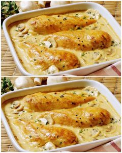 🍽️ Zapiekane filety z kurczaka w kremowym sosie grzybowym – po prostu nie do odparcia! 🍄🐔